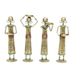 Rajasthani Tribal Majdoor Ladies Tagari Doll Hand-painted Tea Light Candle Holder in Metal Cum Showpiece Set of 4